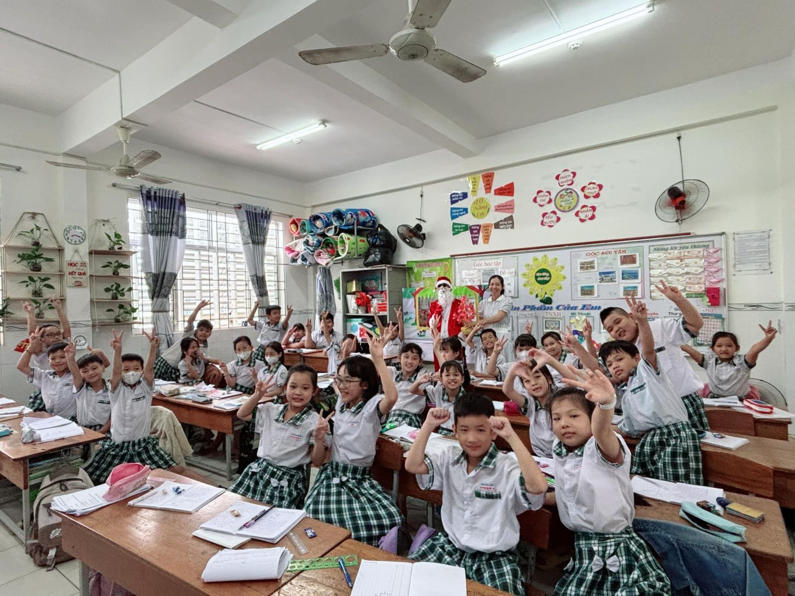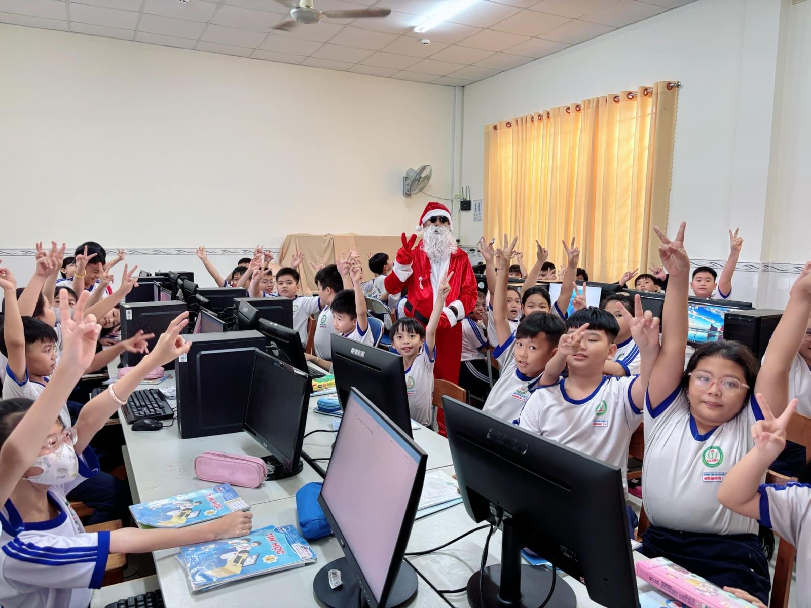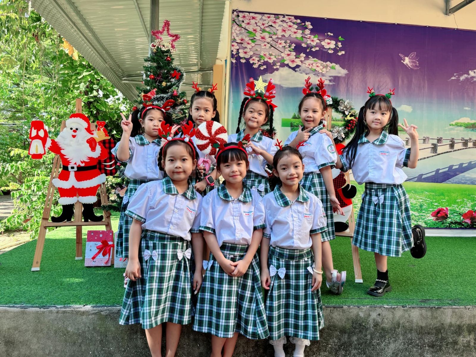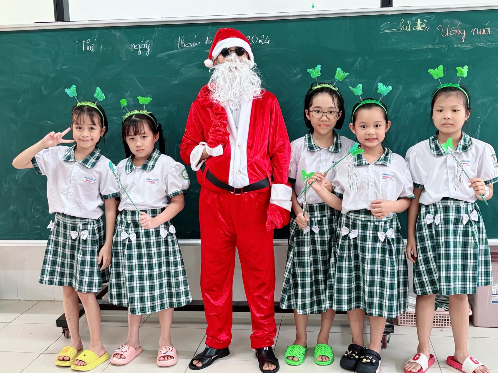 Không khí Giáng sinh ngập tràn khắp sân trường, len lỏi vào từng góc lớp, mang theo chút hơi lạnh của những ngày cuối năm và niềm hân hoan của các em học sinh. Cây thông lấp lánh, những dây đèn rực rỡ cùng những sắc màu lễ hội đã làm cho ngôi trường trở nên ấm áp, vui tươi hơn bao giờ hết.